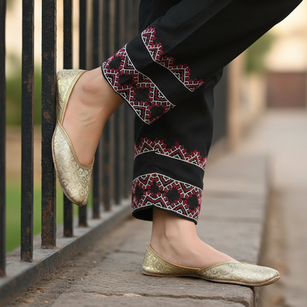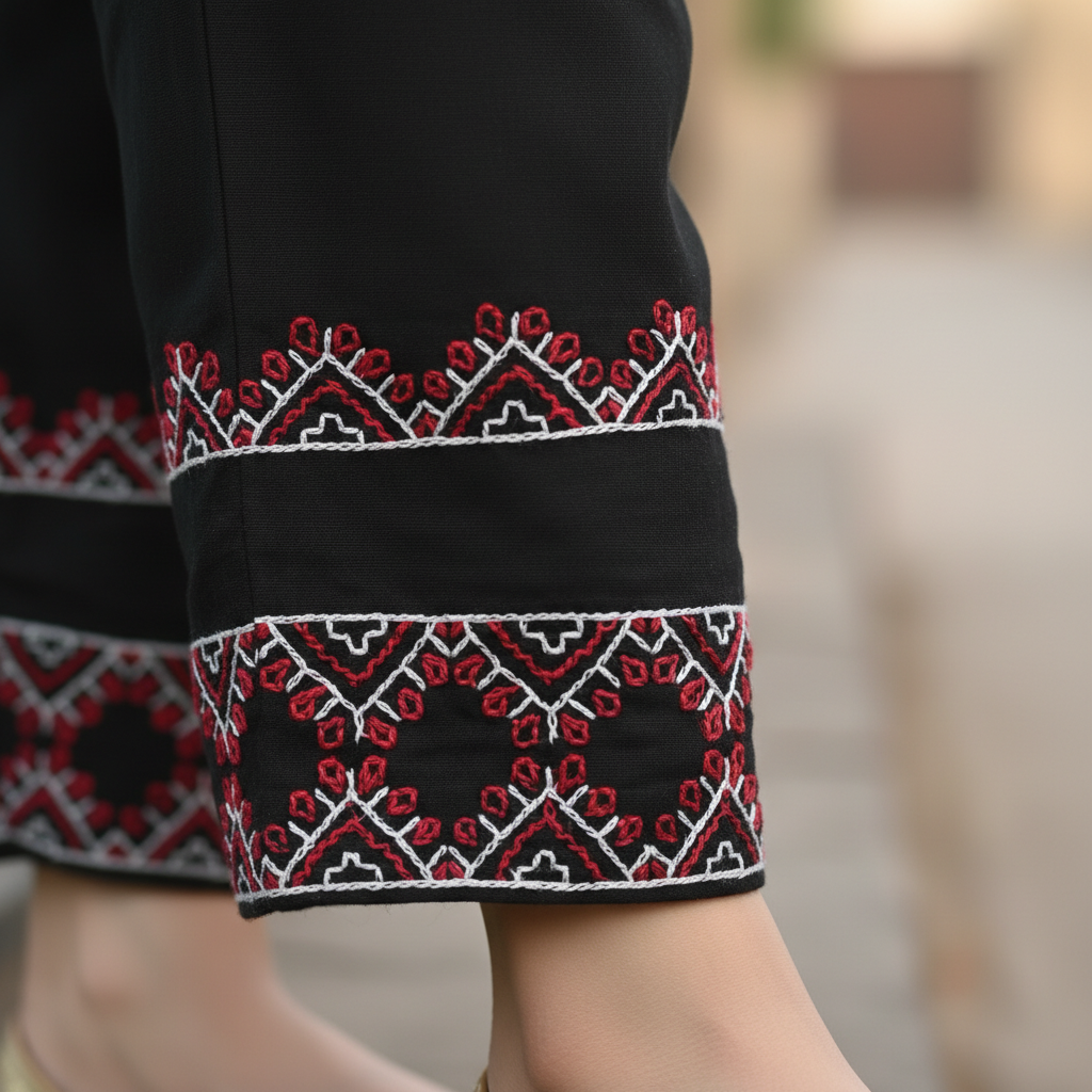 1 Pc Stitched beautiful hand-embroidered Shalwar / Trouser
